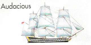 She took part in many actions during the almost continuous warfare that Britain was engaged in at the turn of the 18th Century. One action was the Battle of the Nile in August 1798, when she fought and defeated the French ship Conquerant. Vessels like the Audacious were floating gun platforms, their primary task being to undertake offensive actions against an enemy fleet. Although her type was considered to be the best balance between offensive power and sailing ability; French vessels had a better underwater hull form and could usually out sail their British counterparts. She was broken up in Aug-1815.